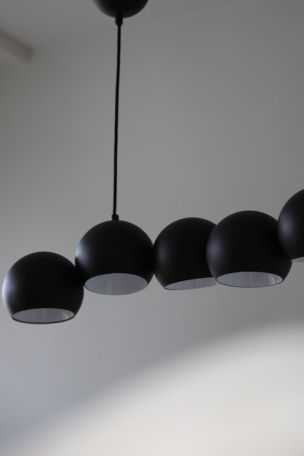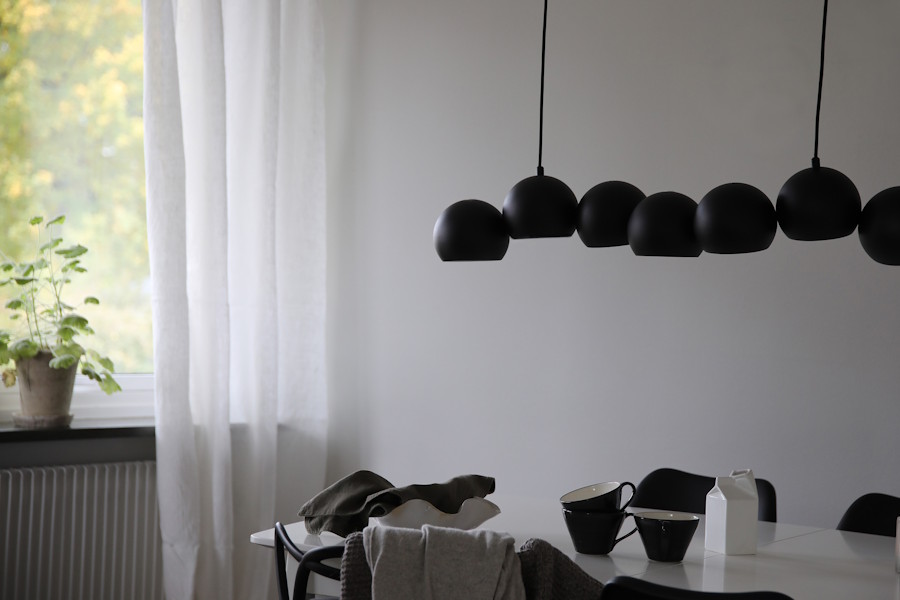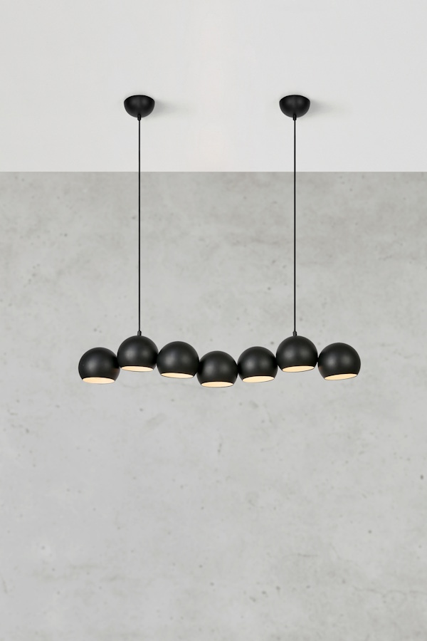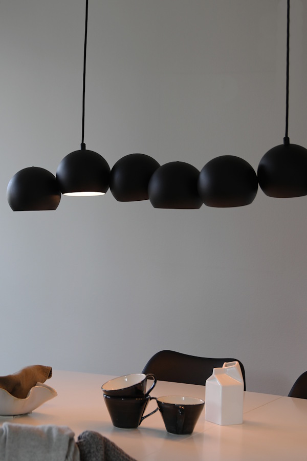 Den pampiga svarta taklampan Cupolo, designad av Joakim Thedin, är en riktig blickfångare med sina sju bubblor i olika nivåer som skapar en dynamisk och levande form. Lampan gör sig extra vacker över matbordet där den sprider ett stämningsfullt ljus men är lika stilfull i kontoret eller vardagsrummet. Tack vare upphängningen med två fästen – ett vid takuttaget och ett smygfäste – får lampan en symmetrisk och välbalanserad look.