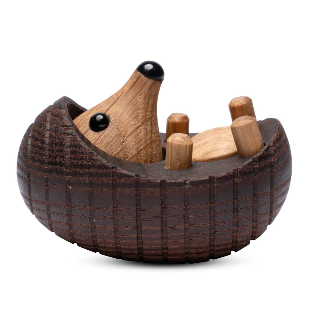 Den lilla igelkotten Spike av trä sträcker ut sig på rygg för en stunds vila medan löven dansar i trädens kronor och mjuka, vita moln svävar över himlen. En underbar present att ge bort till någon du tycker om. Den lilla igelkotten njuter allra mest av att somna till naturens stillsamma ljud och drömma om saker som bara en igelkott kan drömma om. Han skulle nog mer än gärna ta en avkopplande tupplur i ditt hem också!