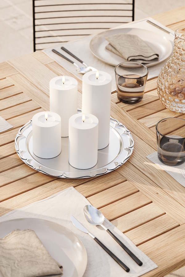 Det vita blockljuset från DeluxeHomeart är ett batteridrivet LED-ljus som kan användas både utomhus och inomhus. LED-ljuset passar därmed perfekt på den mysiga middagen, i trädgården eller på balkongen. Med den mjukt fladdrande patenterad LED-lågan på toppen får du den härliga atmosfären av tända ljus utan några av de skadliga kemikalier som frisläpps från vanliga vaxljus. Utomhusljuset är helt skyddad från regn, snö och frost då den är IP44-certifierad.