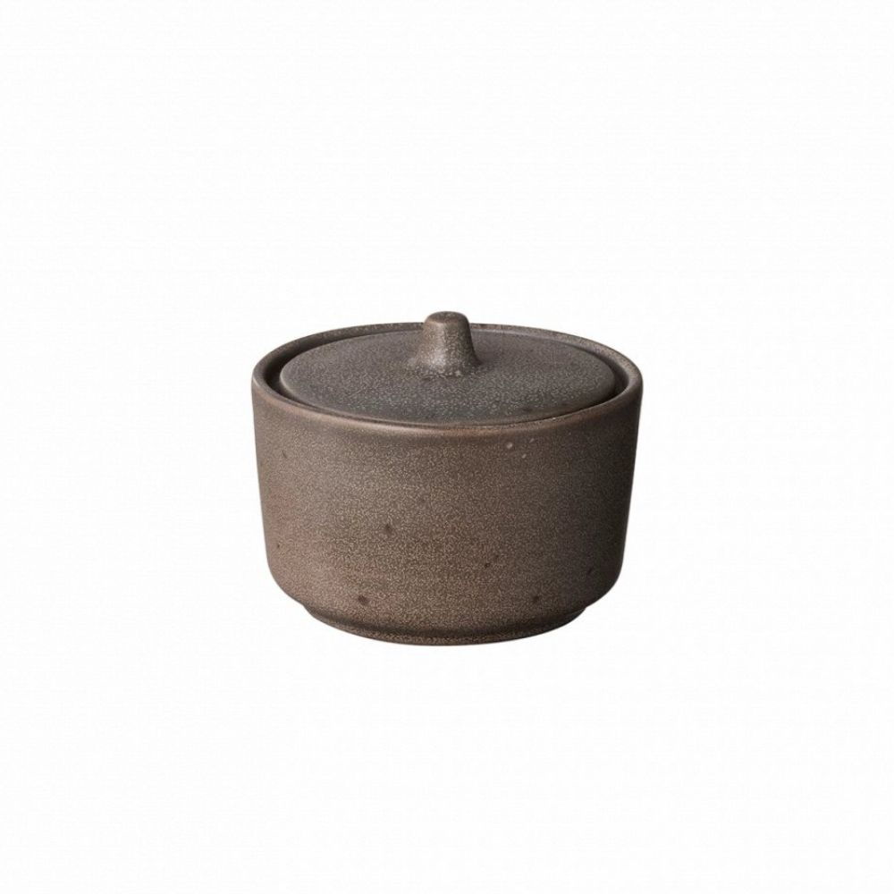 Kumi skål med lock Ø8,5 cm i färgen Espresso är tillverkad av robust stengods med en matt, mjuk yta som känns behaglig att hålla i.