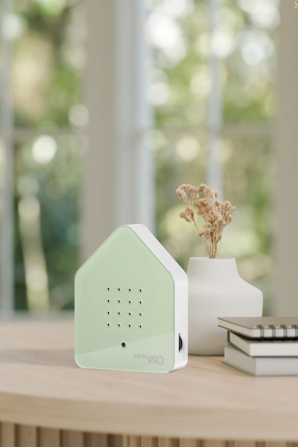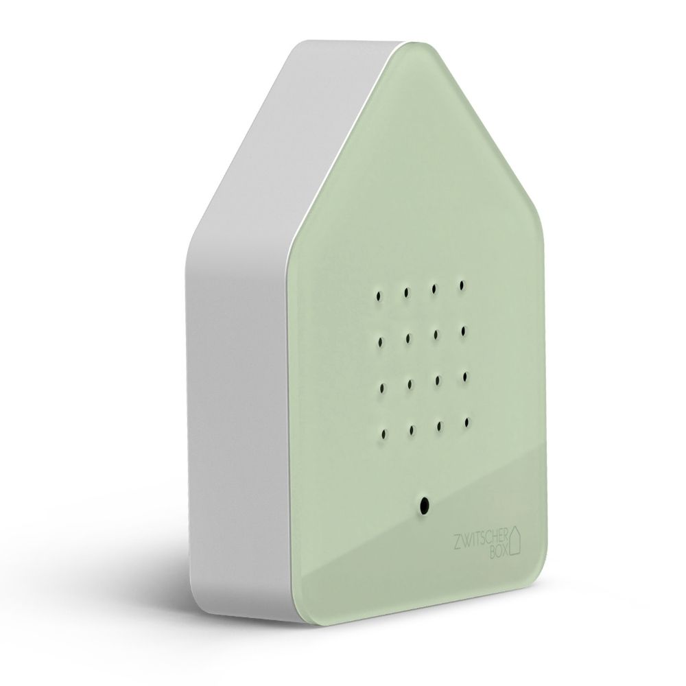 Med Zwitscherbox speldosa i ljusgrön Sage får du en vackert fågelsång som skapar en lugn känsla i rummet och hjälper dig att varva ner. Ljudlådan aktiveras när du passerar förbi och stängs av efter två minuter. Du kan placera speldosan var som helst och njuta av en avkopplande stund. Sätt den i badrummet och få en bra start på dagen när du gör dig i ordning eller ha den i hallen för en välkomnande sång.