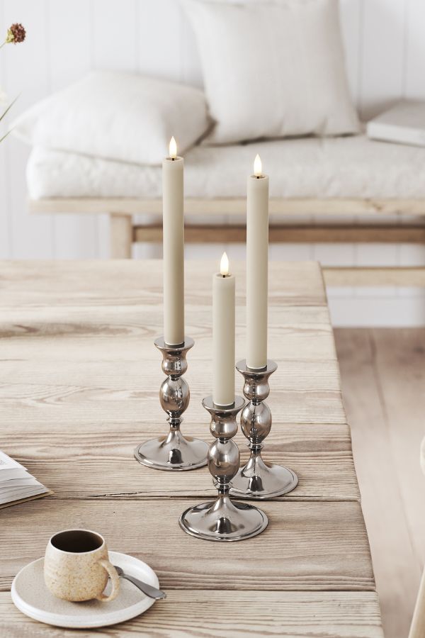 Skapa ett mysigt och inbjudande hem med DeluxeHomearts eleganta LED-kronljus i färgen Sand. Dess realistiska design med förstärkt topp och WETLOOK™-effekt ger ett mycket verklighetstroget utseende som påminner om äkta stearinljus. Med den patenterade 3D REAL FLAME™-tekniken får du en imponerande naturtrogen ljuslåga som höjer stämningen i varje rum.